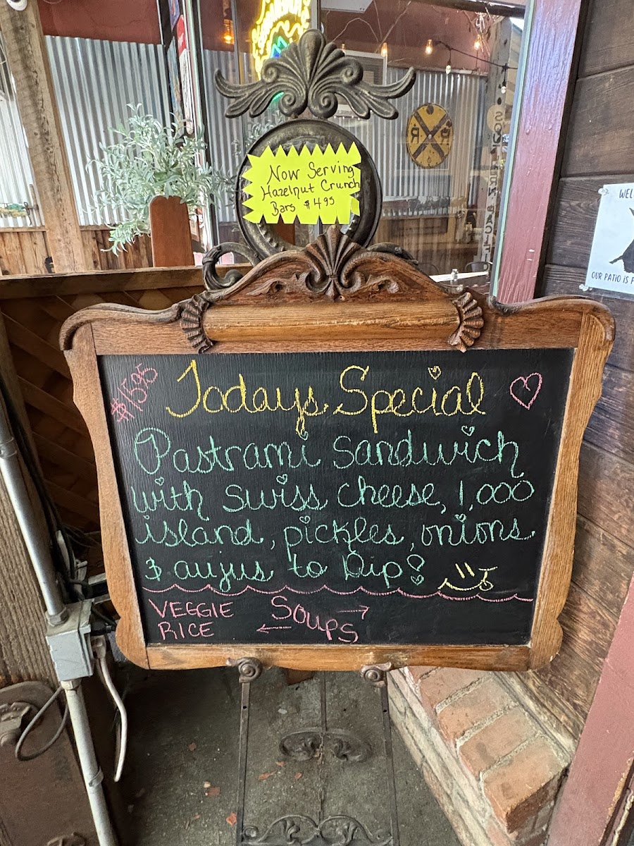 Mustard, Mayo, Swiss Cheese, Sauerkraut and Pastrami served with Au Jus to dip.